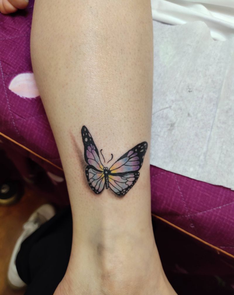 蝴蝶纹身图片_脚部腿部New School新传统蝴蝶小清新纹身图案