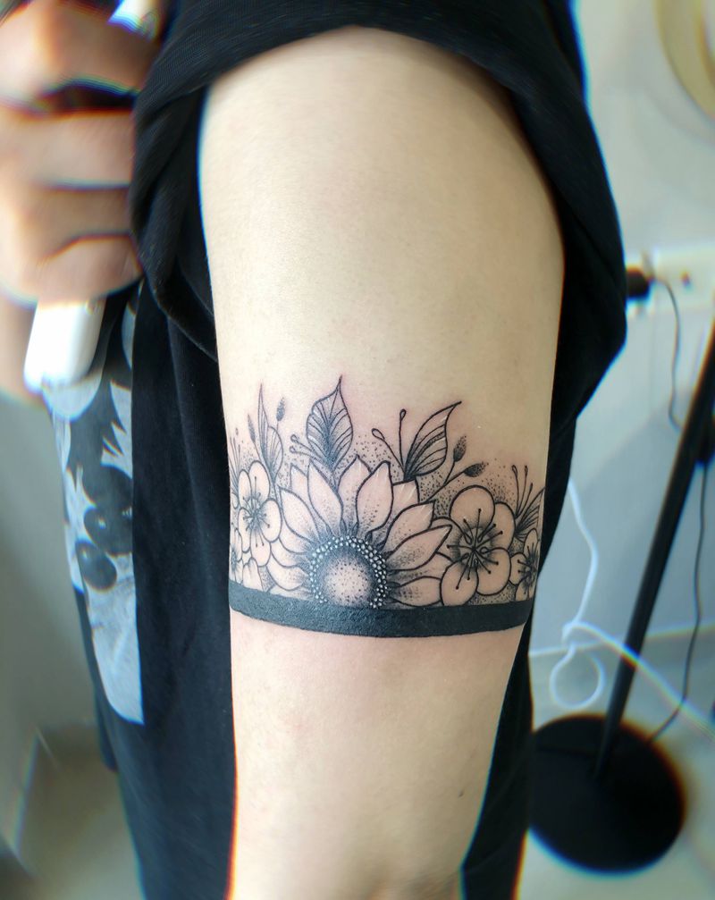 素花遮盖纹身图片_手臂新传统点刺素花纹身图案