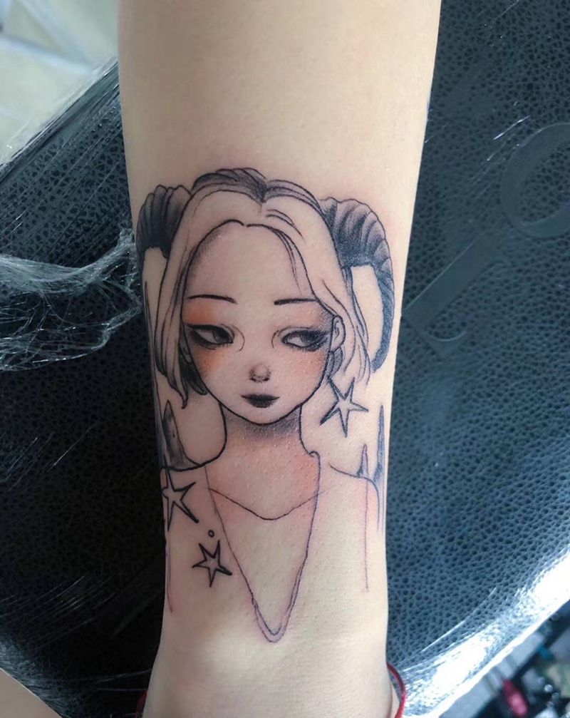 当前位置: 首页 >重庆市纹身店-妙颜刺青纹身图案>小女孩儿纹身图片_手臂新传统纹身图案
