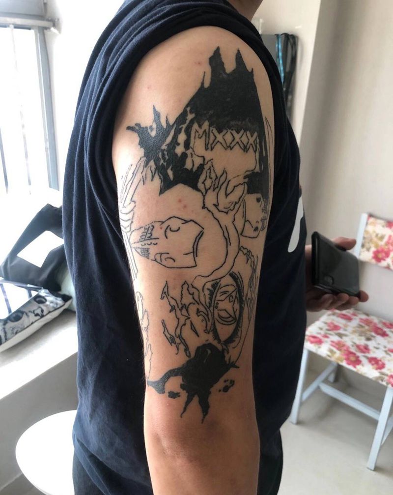 当前位置: 首页 >重庆市纹身店-妙颜刺青纹身图案>遮盖纹身图片_手臂新传统纹身图案