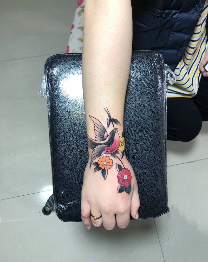 当前位置: 首页 >重庆市纹身店-妙颜刺青纹身图案>遮盖纹身图片_手部Old School纹身图案