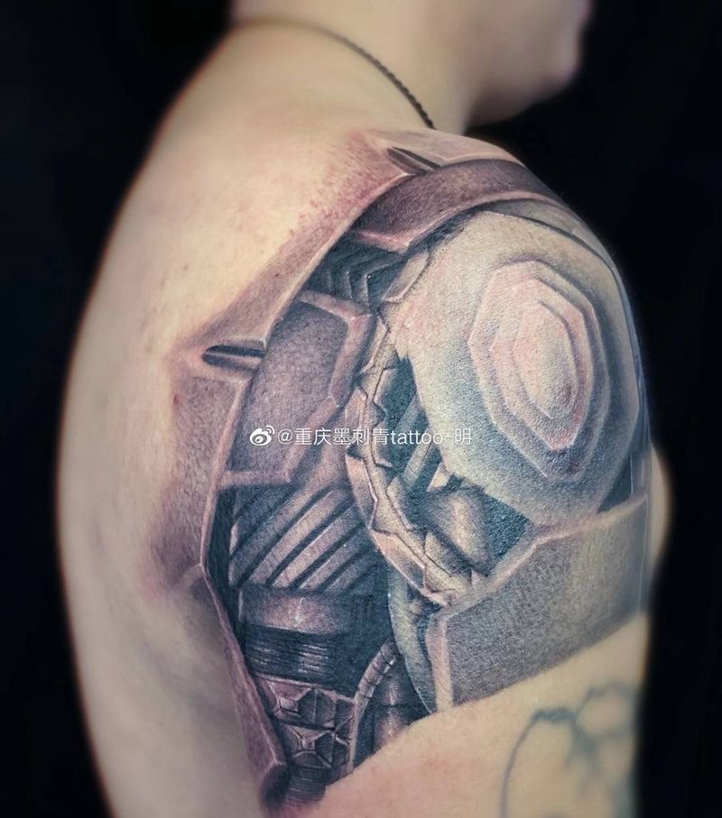 当前位置: 首页 >重庆市纹身店-重庆墨刺青tattoo工作室纹身图案>机械臂纹身图片_肩部欧美写实纹身图案
