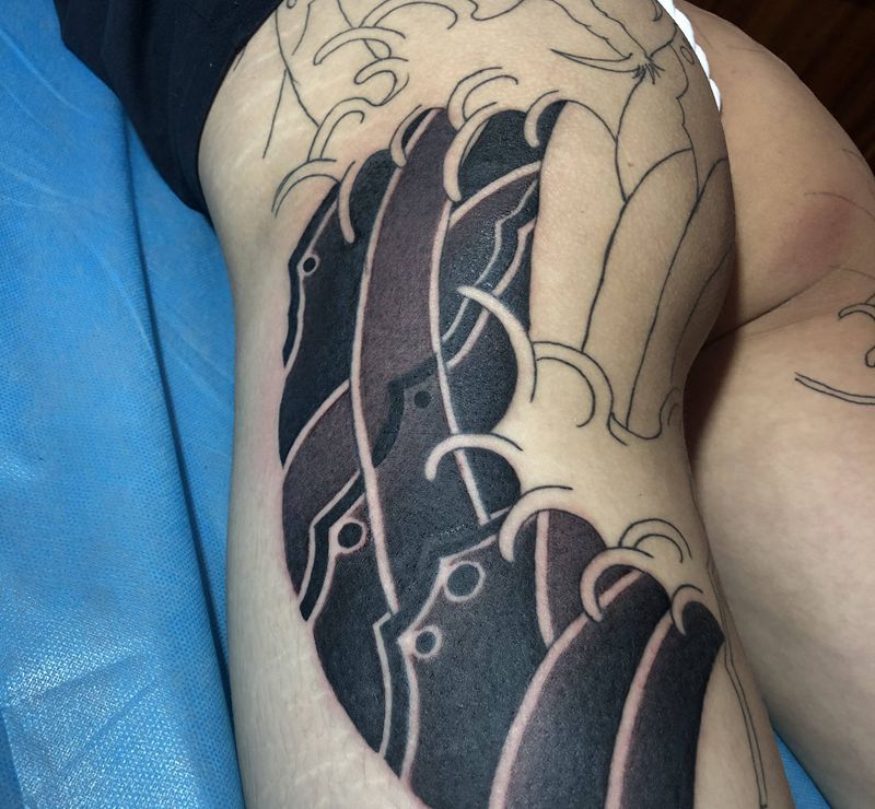 • T网红王老大花腿龙纹身图片_腿部新传统纹身图案