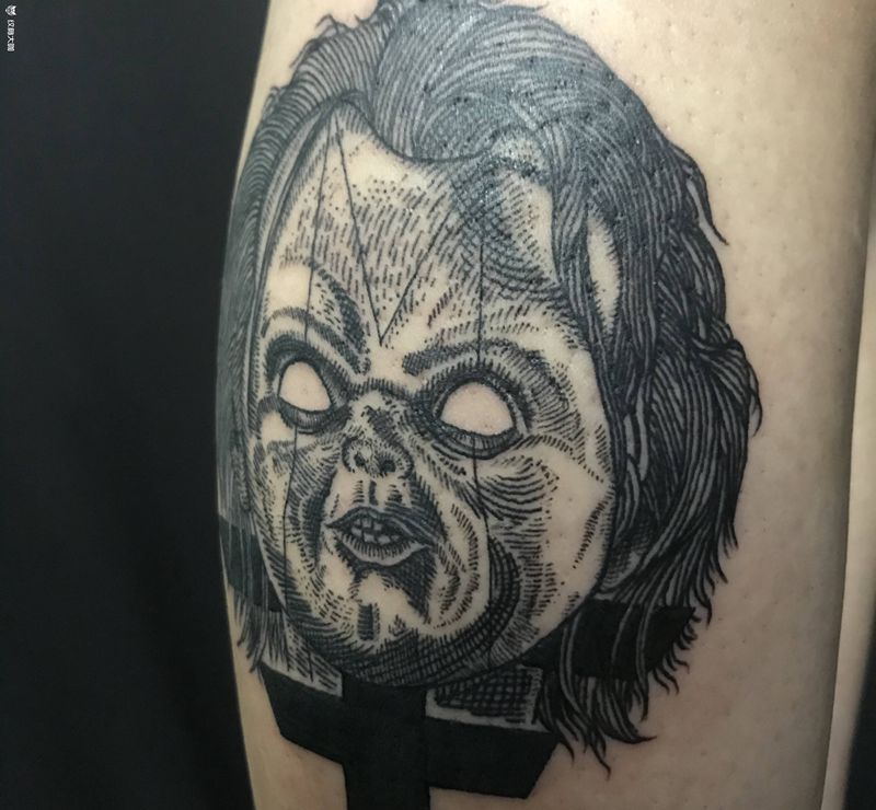 鬼娃回魂纹身图片_手部腿部线条纹身图案