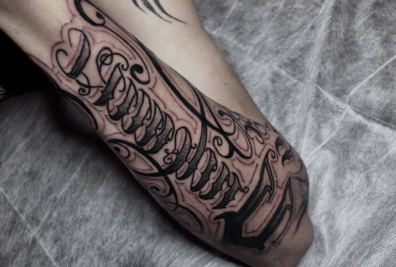 当前位置: 首页 >重庆市纹身店-白夜刺青纹身图案>奇卡诺花体字纹身图片_手臂花体字纹身图案