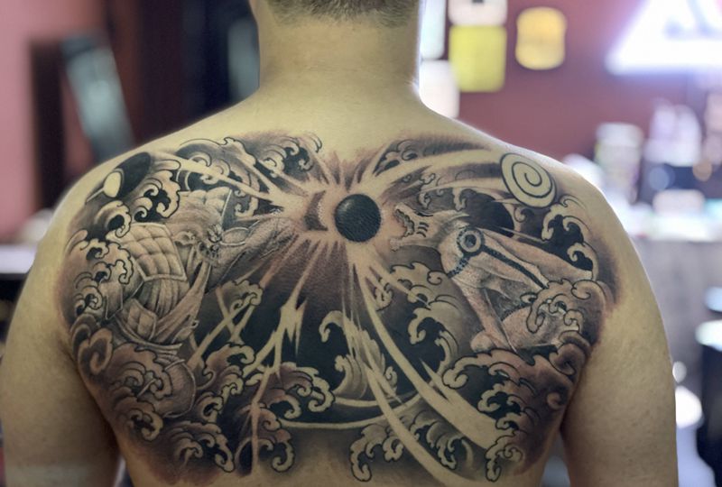 • T云龙九郎纹身图片_背部老传统云龙九郎纹身图案