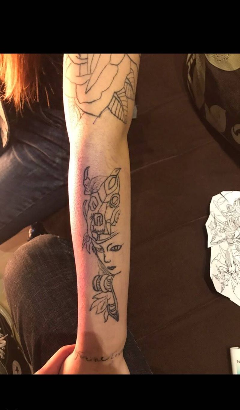 当前位置: 首页 >重庆市纹身店-纹案刺青纹身图案>艺妓遮盖小臂纹身图片_传统手臂手稿艺妓人物纹身图案