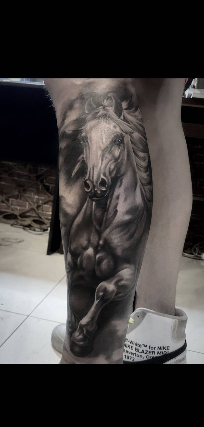 当前位置: 首页 >重庆市纹身店-纹案刺青纹身图案>龙与马纹身图片_腿部欧美写实龙马纹身图案