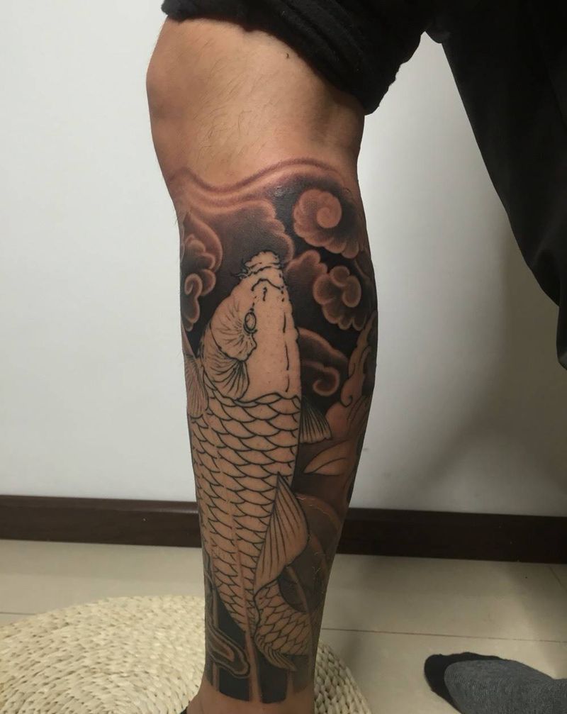 • T网红王老大花腿龙纹身图片_腿部新传统纹身图案