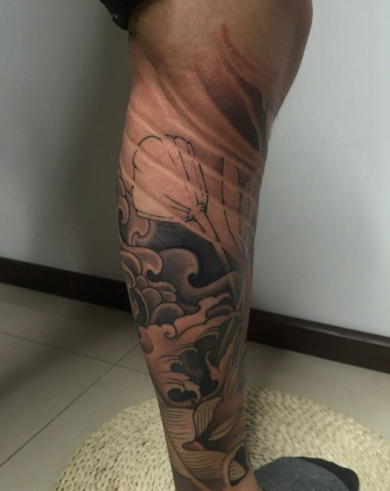 • T网红王老大花腿龙纹身图片_腿部新传统纹身图案