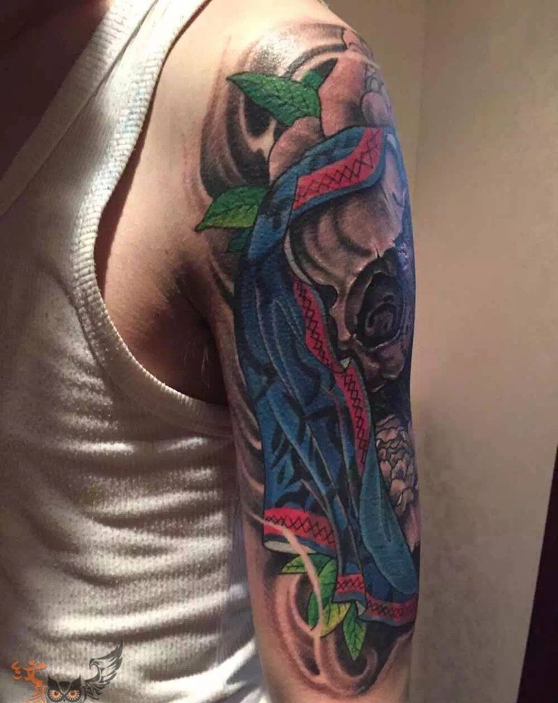 图腾遮盖纹身图片_手臂欧美成品鬼神纹身图案