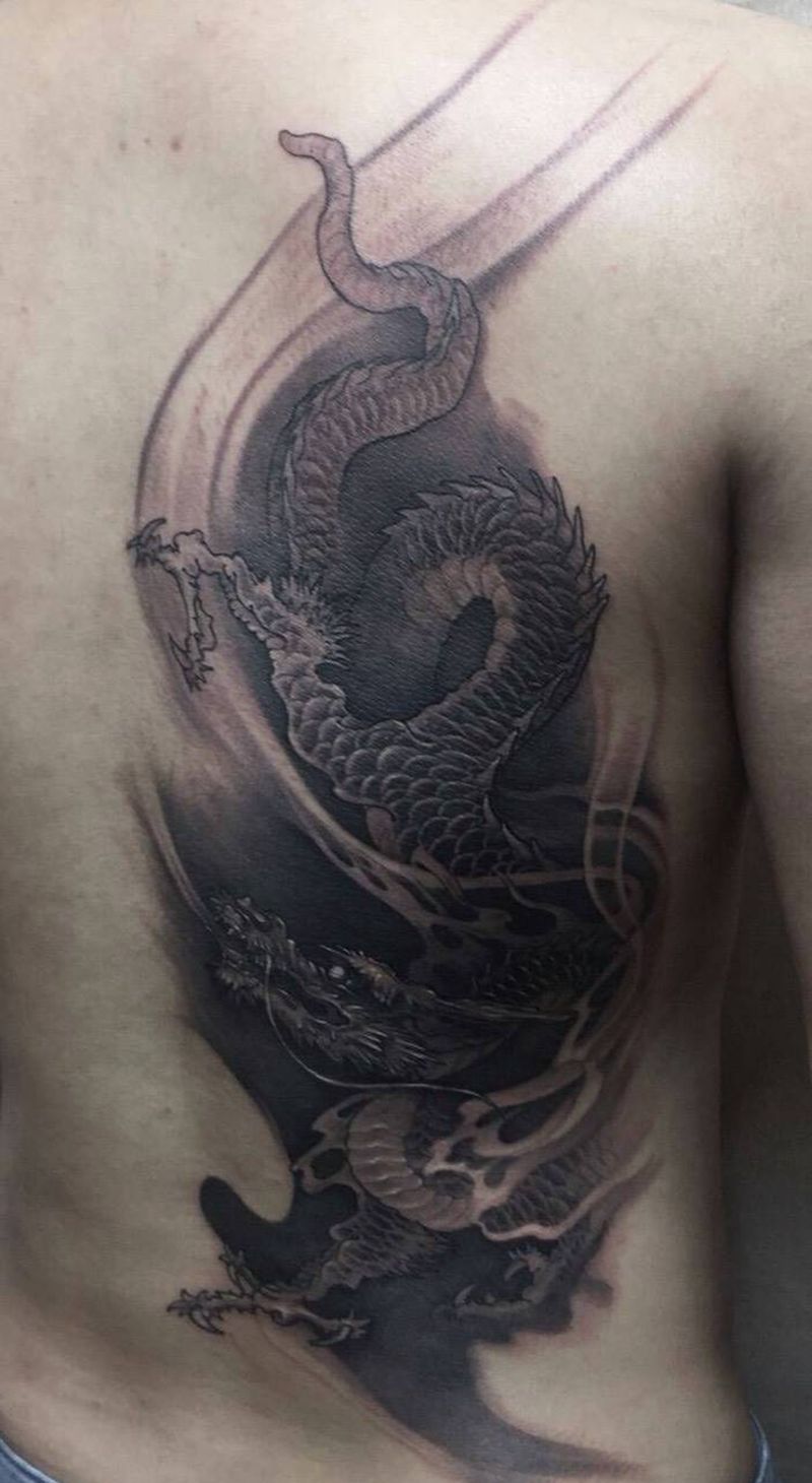 黑灰满背纹身图案