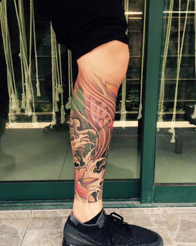 鲤鱼包小腿纹身图片_成品手臂腿部背部传统纹身图案
