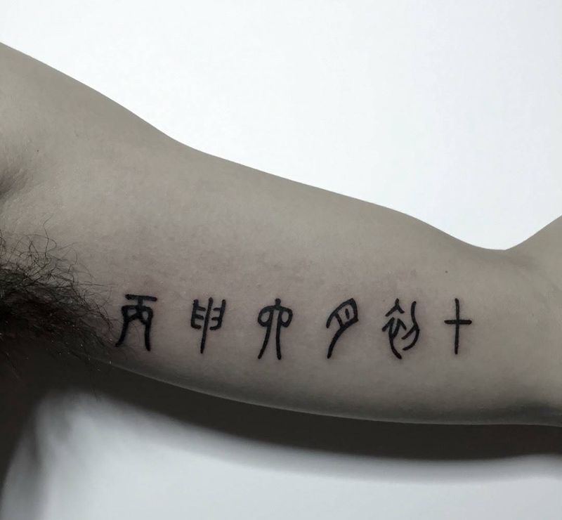 当前位置: 首页 >重庆市纹身店-重庆梓刺青纹身图案>篆书纹身图片_成品手臂习俗字符纹身图案