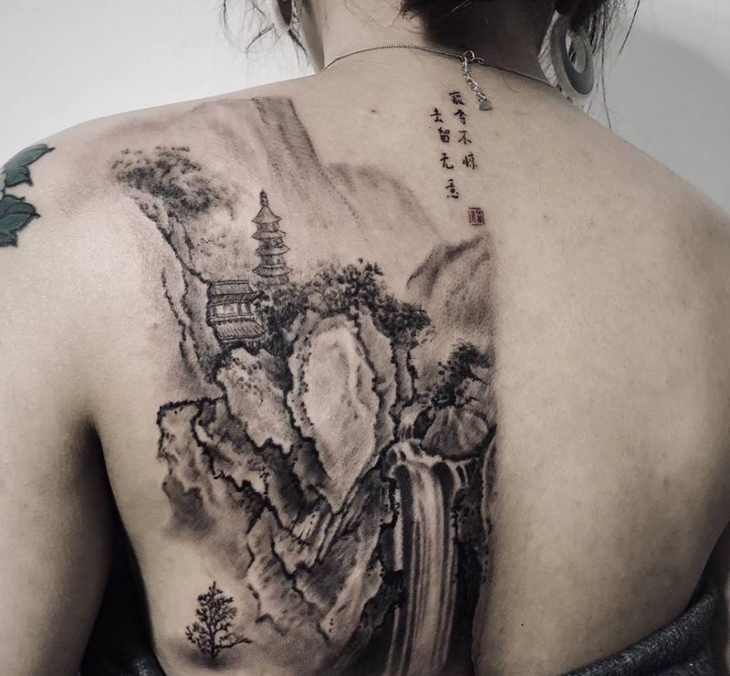 当前位置: 首页 >重庆市纹身店-重庆梓刺青纹身图案>山水画纹身图片_背部国画纹身图案
