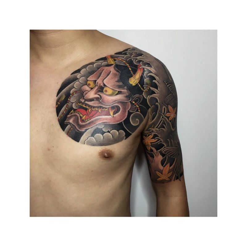 半甲纹身图片_成品胸部手臂传统鬼神动物静物纹身图案
