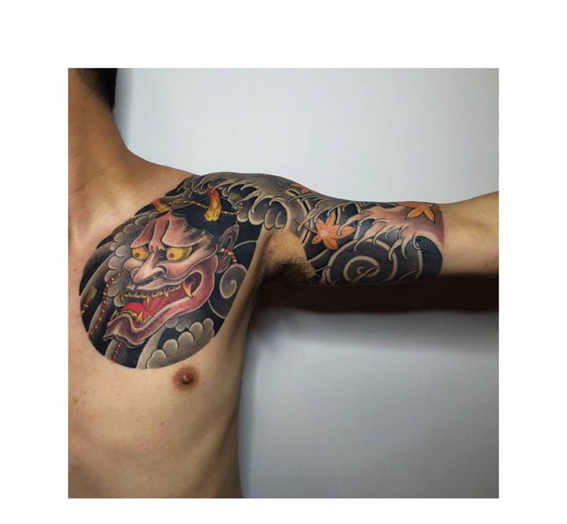 当前位置: 首页 >重庆市纹身店-重庆梓刺青纹身图案>半甲纹身图片_成品胸部手臂传统鬼神动物静物纹身图案
