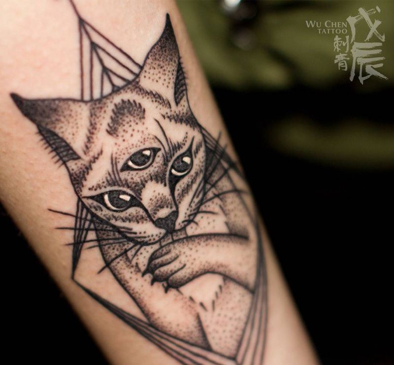 当前位置: 首页 >重庆市纹身店-戊辰刺青纹身图案>黑暗猫纹身图片_成品手臂欧美清新动物小清新点刺猫猫纹身图案