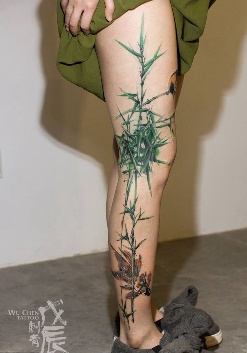 当前位置: 首页 >重庆市纹身店-戊辰刺青纹身图案>飞鸟与鱼纹身图片_成品腿部清新国画传统植物水彩刺秦水彩彩色水墨纹身图案