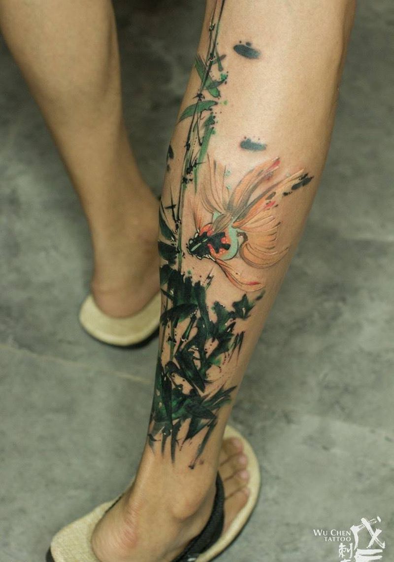 • T网红王老大花腿龙纹身图片_腿部新传统纹身图案