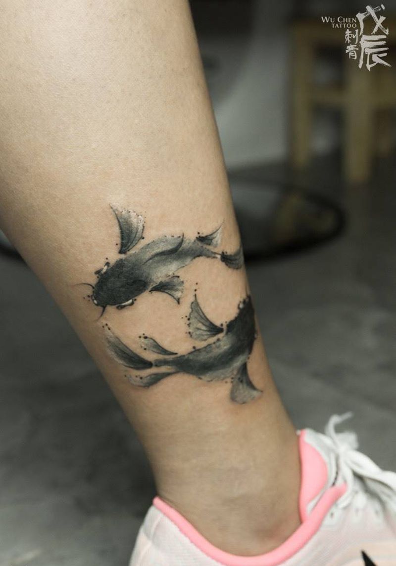 当前位置: 首页 >重庆市纹身店-戊辰刺青纹身图案>水墨金鱼纹身图片_成品脚部传统国画动物中国风水墨鲤鱼锦鲤刺青锦鲤纹身图案