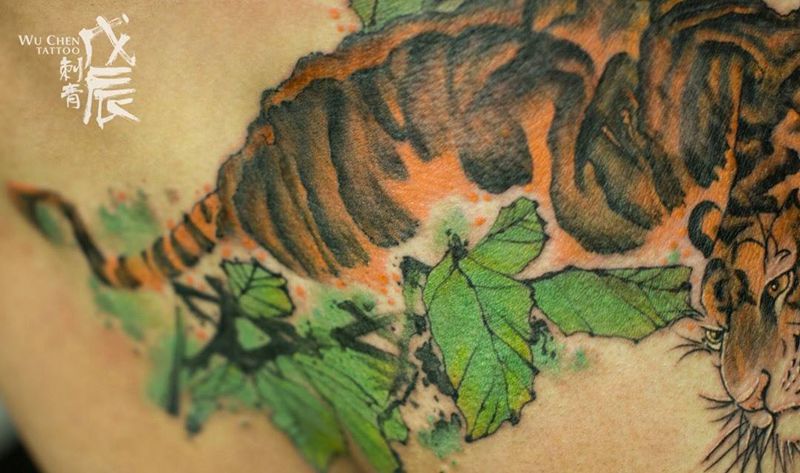 当前位置: 首页 >重庆市纹身店-戊辰刺青纹身图案>本是逍遥客纹身图片_成品臀部传统国画动物水彩彩色刺青水墨老虎纹身图案
