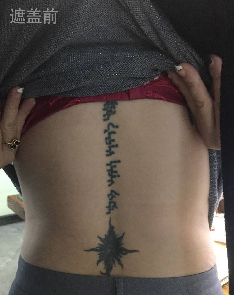 遮去纹身图片_成品背部欧美清新几何字符水彩刺秦水彩水墨欧美刺青纹身图案