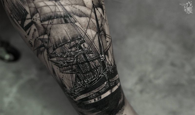 当前位置: 首页 >重庆市纹身店-戊辰刺青纹身图案>帆纹身图片_腿部欧美写实水彩帆船纹身图案