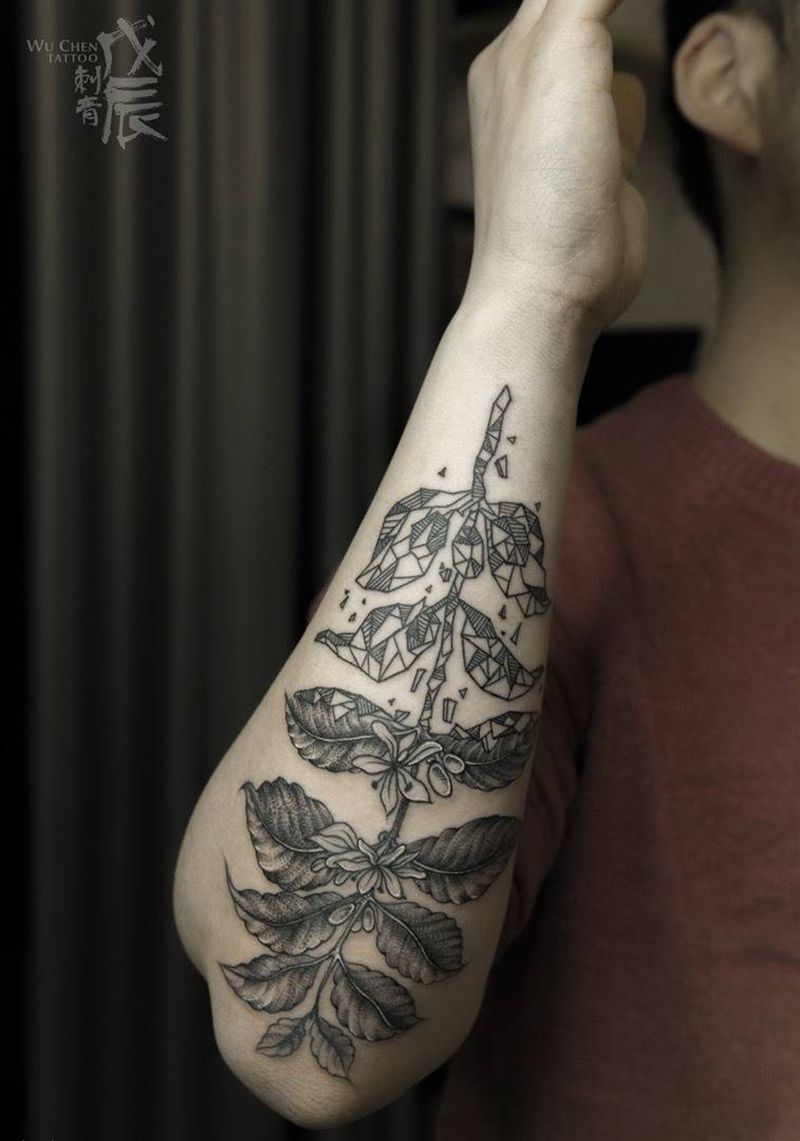当前位置: 首页 >重庆市纹身店-戊辰刺青纹身图案>咖啡树纹身图片_成品手臂手部欧美几何植物素描咖啡树纹身图案