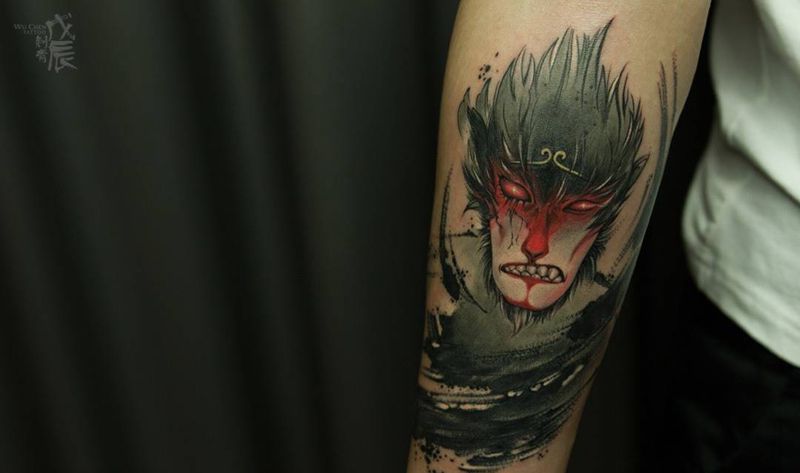当前位置: 首页 >重庆市纹身店-戊辰刺青纹身图案>大圣归来纹身图片_成品手臂手部欧美传统鬼神孙悟空美猴王纹身图案