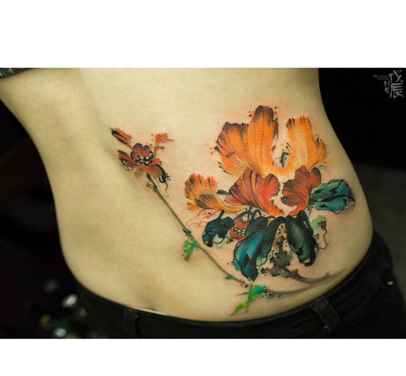 • 女性大花胸纹身_43张霸气漂亮的女性大花胸纹身图案作品