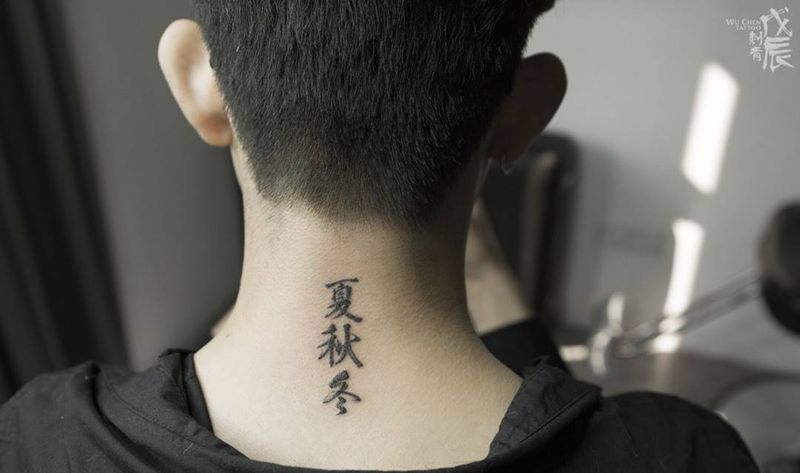 当前位置: 首页 >重庆市纹身店-戊辰刺青纹身图案>字纹身图片_成品肩部颈部手臂国画字符水墨纹身图案