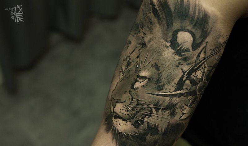 当前位置: 首页 >重庆市纹身店-戊辰刺青纹身图案>狮子头不红烧纹身图片_手部手臂新传统水墨纹身图案