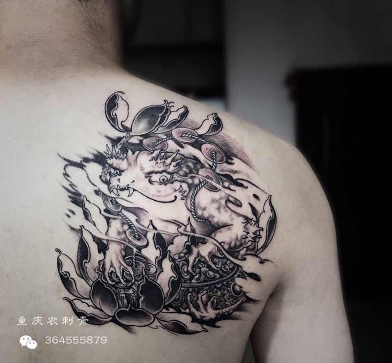 当前位置: 首页 >重庆市纹身店-重庆农刺青纹身工作室纹身图案>金蟾纹身图片_背部肩部新传统老传统金蟾纹身图案