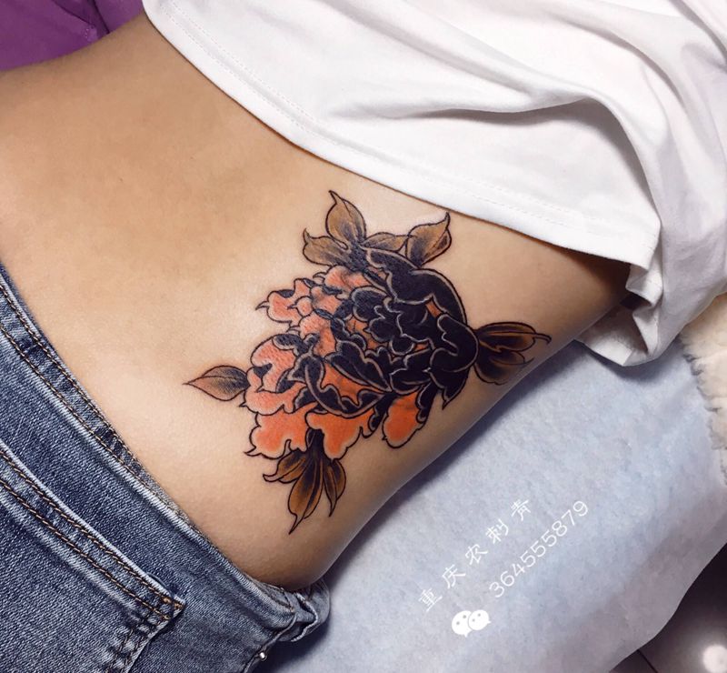 富贵牡丹遮盖纹身图片_腰部臀部新传统水彩牡丹遮盖纹身图案