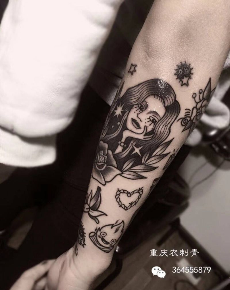 拼图纹身图片_手臂欧美人物动物植物静物纹身图案