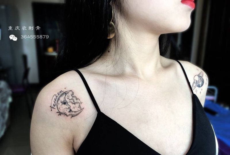 当前位置: 首页 >重庆市纹身店-重庆农刺青纹身工作室纹身图案>小清新纹身图片_颈部肩部几何月亮星空星球纹身图案
