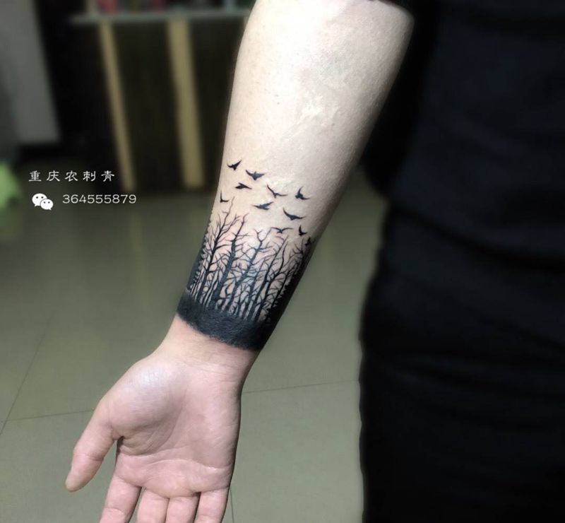 当前位置: 首页 >重庆市纹身店-重庆农刺青纹身工作室纹身图案>剪影树林遮盖疤痕纹身图片_手部手臂图腾树纹身图案