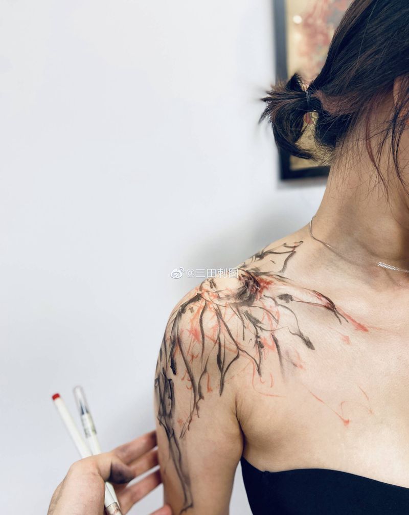• 女性大花胸纹身_43张霸气漂亮的女性大花胸纹身图案作品