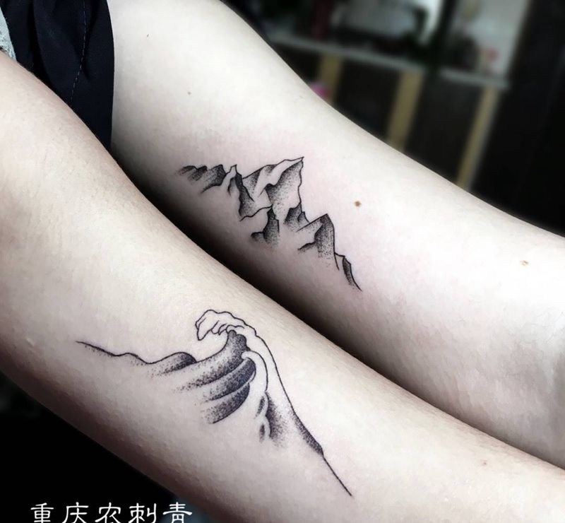 山盟海誓纹身图片_手部手臂点刺几何山水海浪山纹身图案