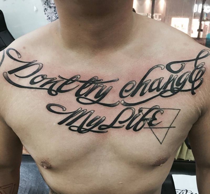 花胸字体纹身纹身图片_胸部手稿纹身图案
