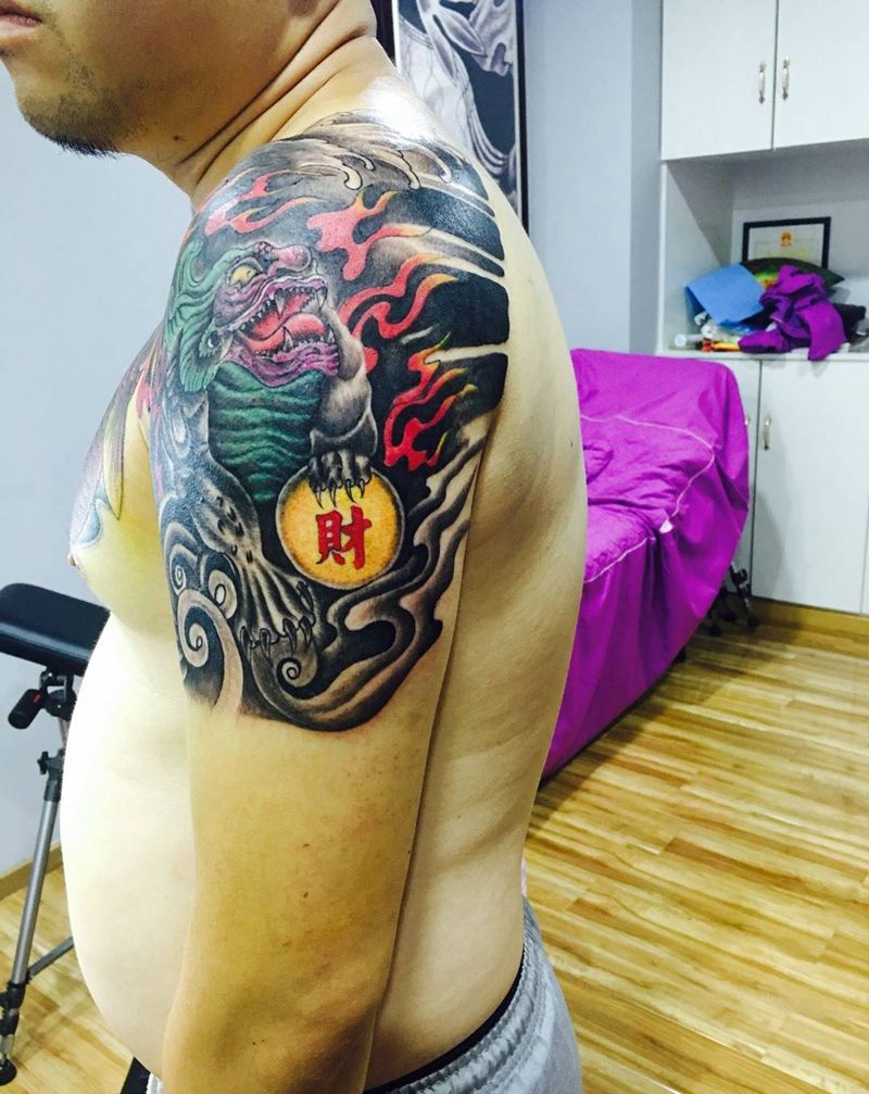 当前位置: 首页 >重庆市纹身店-重庆天墨堂刺青店纹身图案>大臂神兽纹身图片