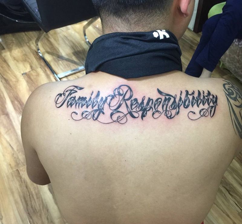 当前位置: 首页 >重庆市纹身店-重庆天墨堂刺青店纹身图案>花体字纹身图片_成品背部传统字符纹身图案