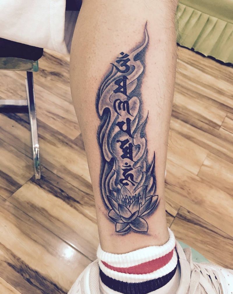 当前位置: 首页 >重庆市纹身店-重庆天墨堂刺青店纹身图案>梵文荷兰花纹身图片_成品脚部传统字符宗教纹身图案