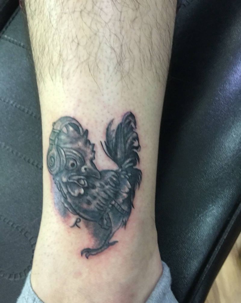 • T包小腿吹火男+阿多福纹身图片_腿部老传统新传统吹火男阿