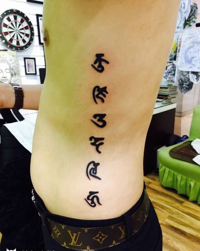 梵文刺青纹身图片_成品腰部传统字符纹身图案