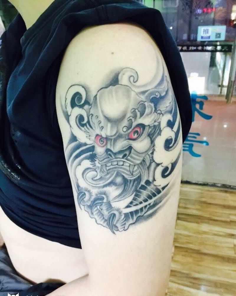 当前位置: 首页 >重庆市纹身店-重庆天墨堂刺青店纹身图案>唐狮恢复效果纹身图片_成品手臂传统动物纹身图案
