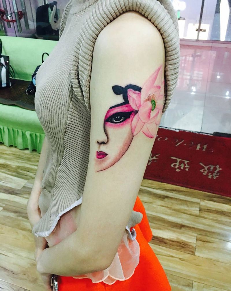 • 女性大花胸纹身_43张霸气漂亮的女性大花胸纹身图案作品