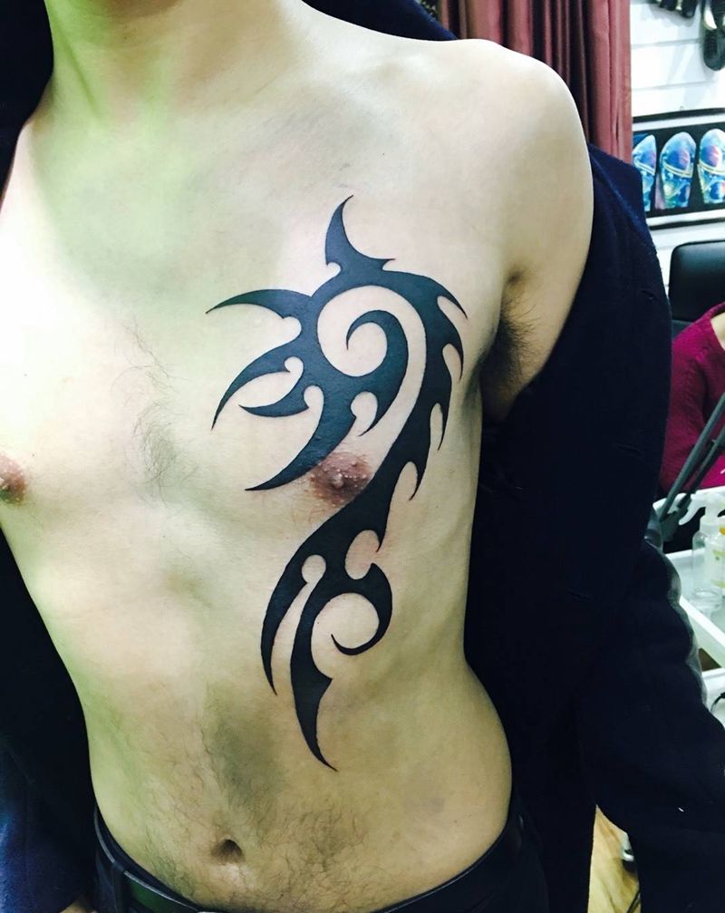 胸部图腾纹身纹身图片_胸部成品传统图腾纹身图案