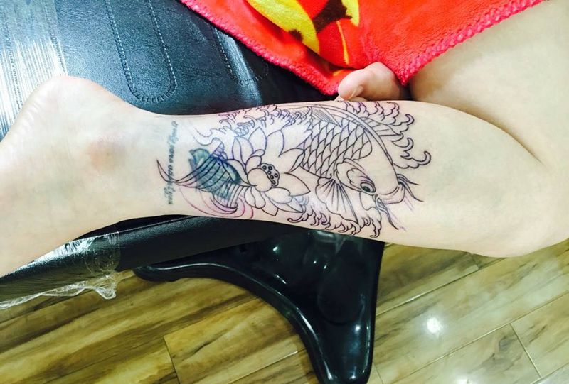 当前位置: 首页 >重庆市纹身店-重庆天墨堂刺青店纹身图案>小腿遮盖一鲤鱼纹身图片